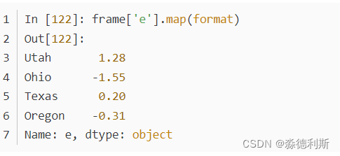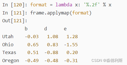 2.applymap()是一种让函数作用于DataFrame每一个元素的操作。