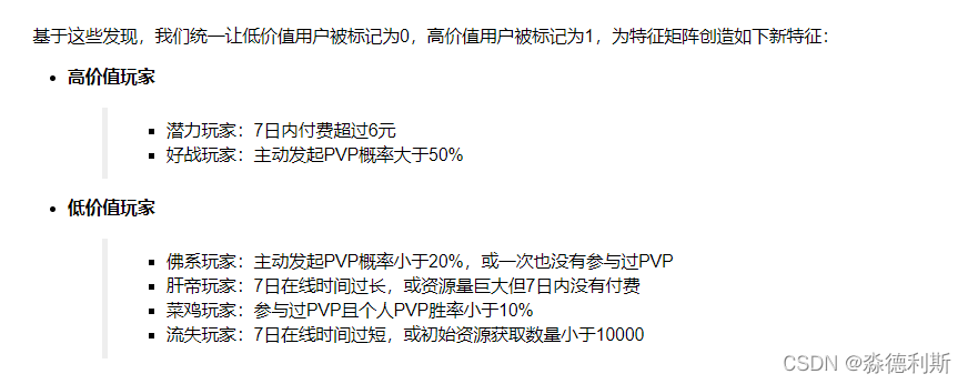 例如最后对高价值低价值的用户进行划分 高价值用户包括好战用户和氪金潜力用户