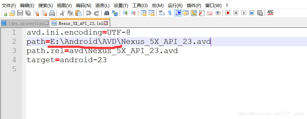 修改 C:\Users\你自己的名\.android\avd 这个目录下 ini 文件