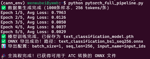 首先在 <font style="background-color:rgb(187,191,196);">cann_env</font> 环境中安装 PyTorch(无需 GPU,CPU 版即可):