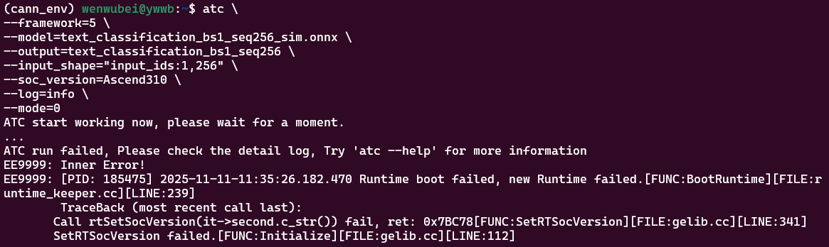 # 执行推理(输入为随机生成的符合 shape 的数据)$msame_path/msame \--model=text_classification_bs1_seq256.om \--input="input_ids:1,256" \--output=./msame_output \--loop=10 # 推理 10 次,验证稳定性