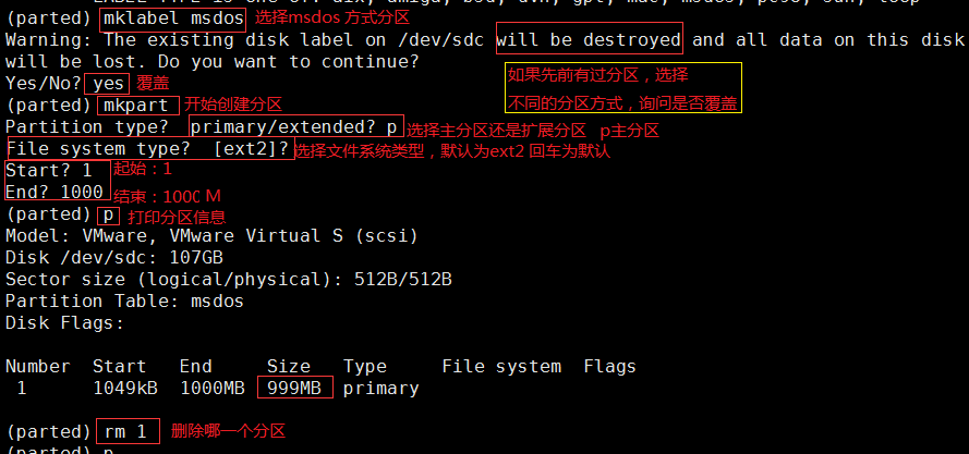 mklabel msdos 选择msdos 方式分区
