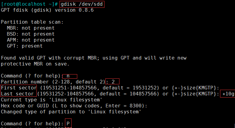 (2) gdisk 创建GPT 分区(用法和fdisk相似)