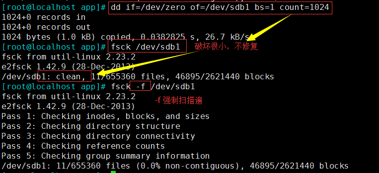 -f 强制修复(当破坏太小时,强制扫描一遍修复)