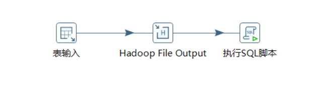 通过表输入的方式,从mysql数据库读取表数据,然后通过Hadoop File Output将mysql数据库的数据以数据文件的方式,输出到hadoop的hdfs,然后执行SQL脚本,将数据文件加载到hive的表中