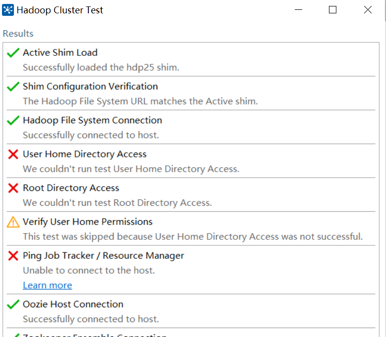 有一部分是报些错误,不过不影响,只要Hadoop File System Connection 没报错就行。