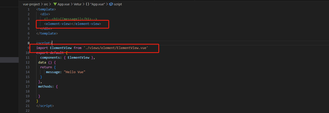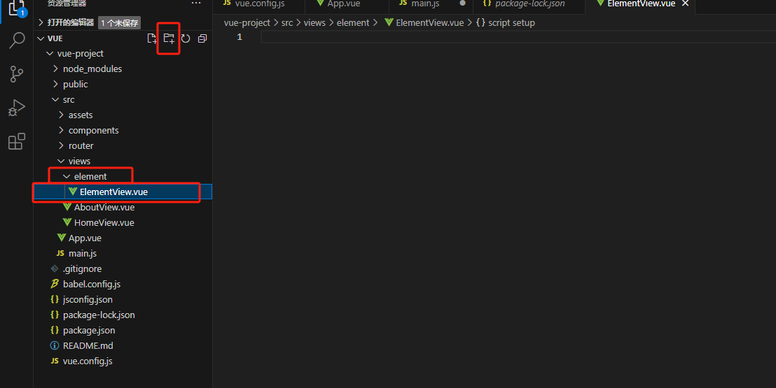 - 新建文件夹和ElementView.vue文件