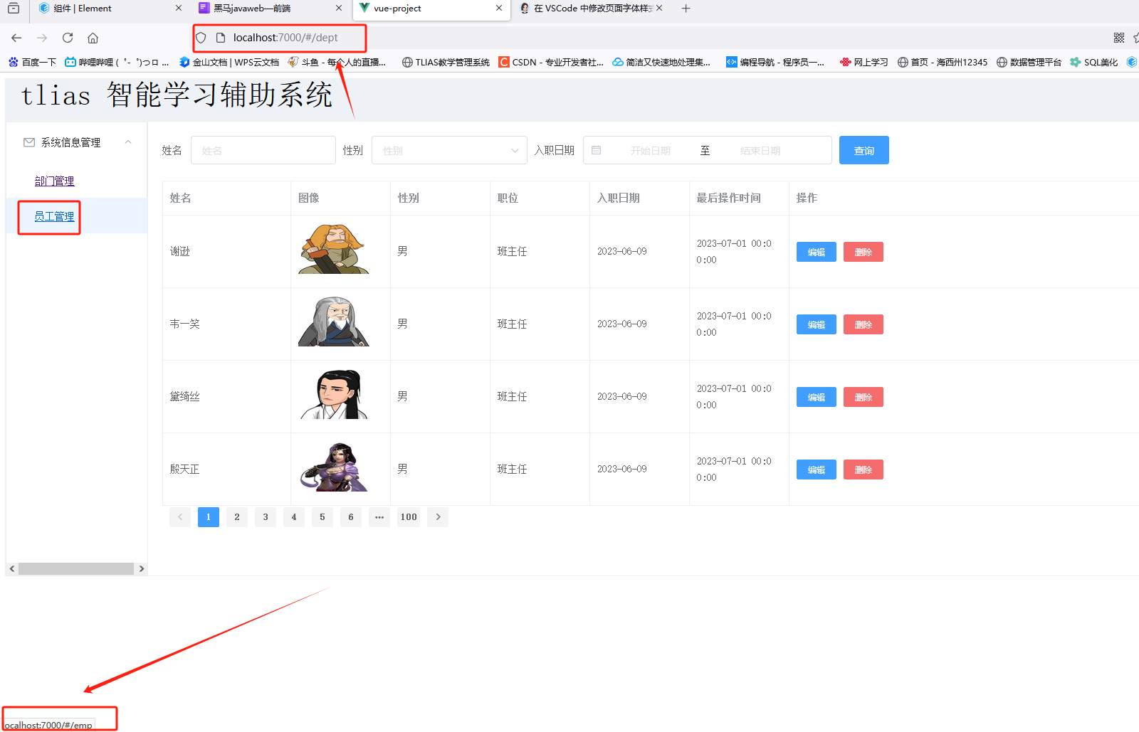 - 访问的路径默认重定向到dept页面