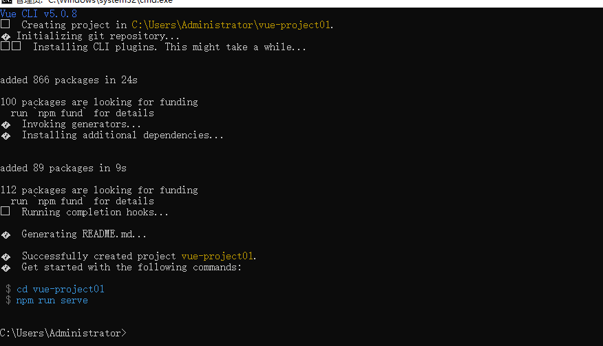 - 命令行vue:vue create vue-project01