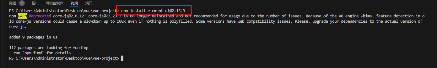- 命令行执行:npm install element-ui@2.15.3