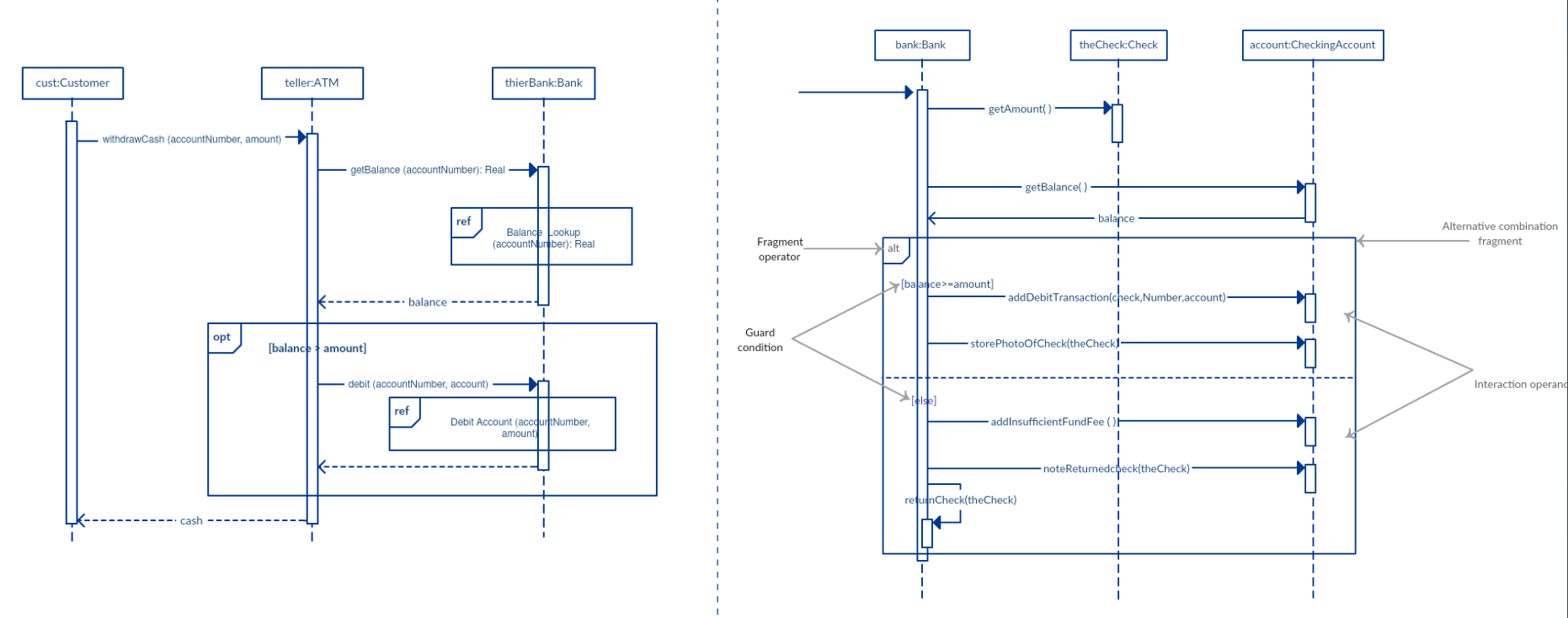 - 涉及多个系统时,时序图更适合表达系统边界和责任流动。
