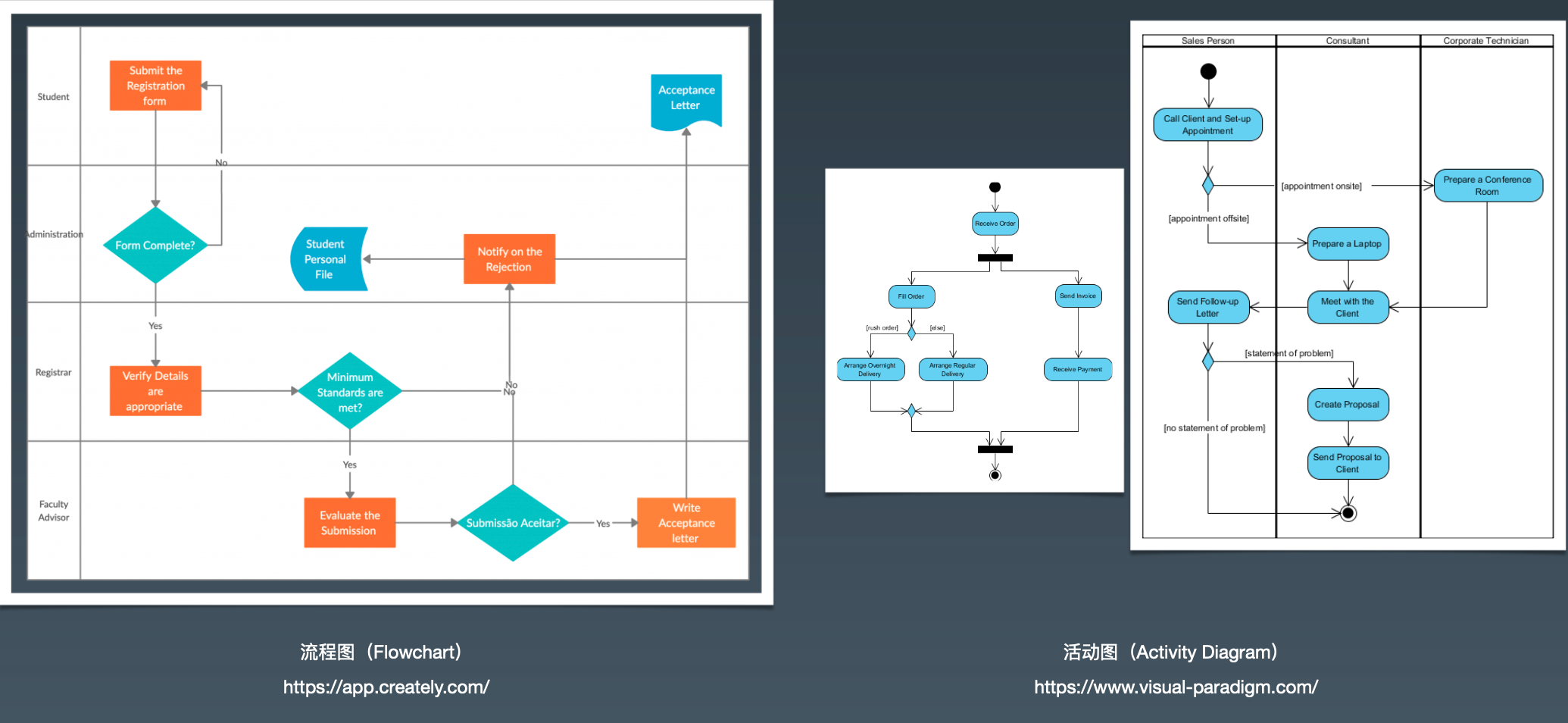 - 尝试用不同的工具画同一个过程,体会其中的差异。