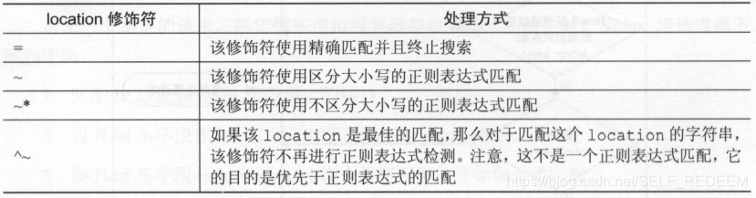 在server配置块中,需要对HTTP请求进行路由匹配和处理,路由匹配在server中通过location配置块进行定义,location模块的匹配规则如下