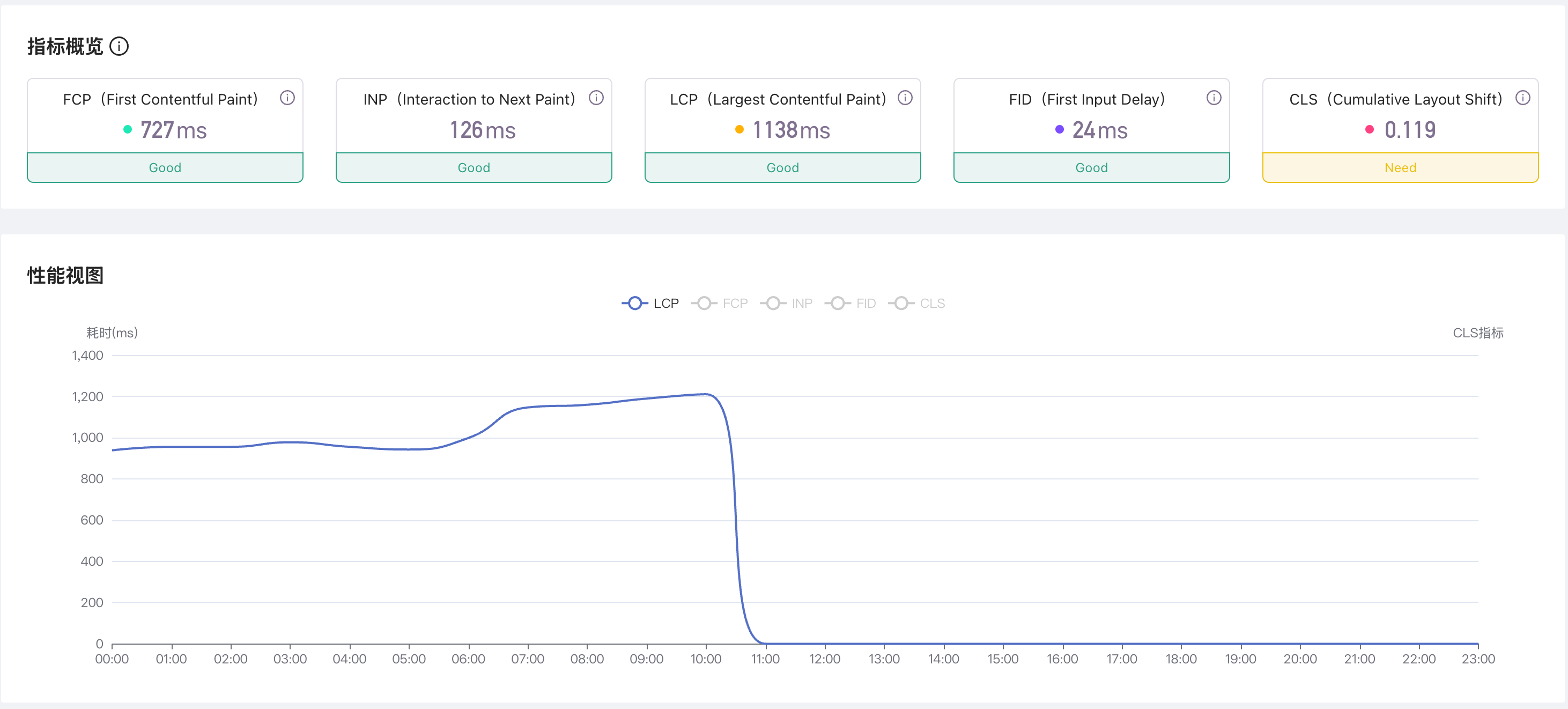 生产环境通过web-vitals等技术观察真实用户的使用效果,可真正了解用户遇到的问题以及需要改进的地方,并且可提供数据依据不断修正测试环境基准与评分模型,旨在更真实模拟还原用户操作数据,提高用户体验。