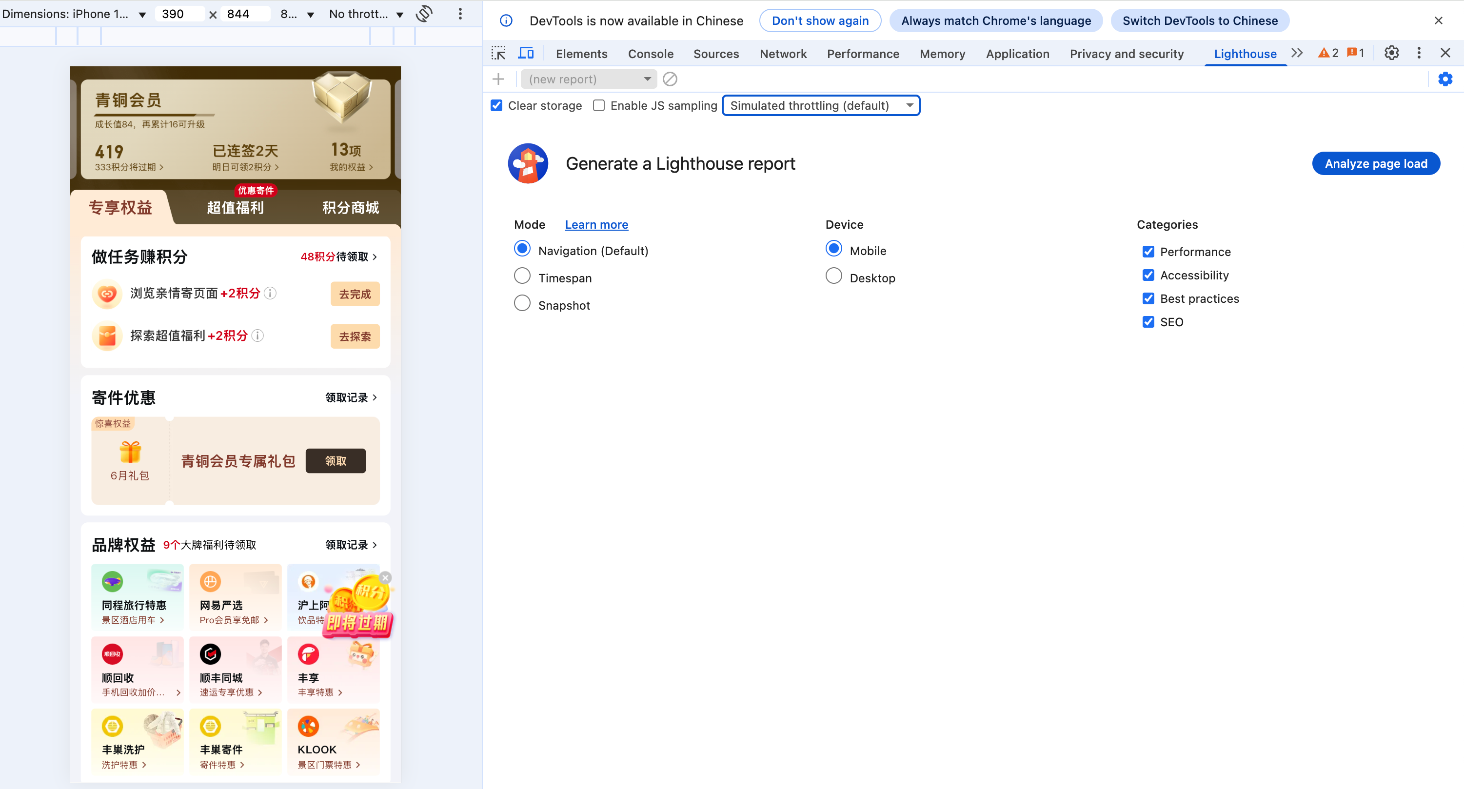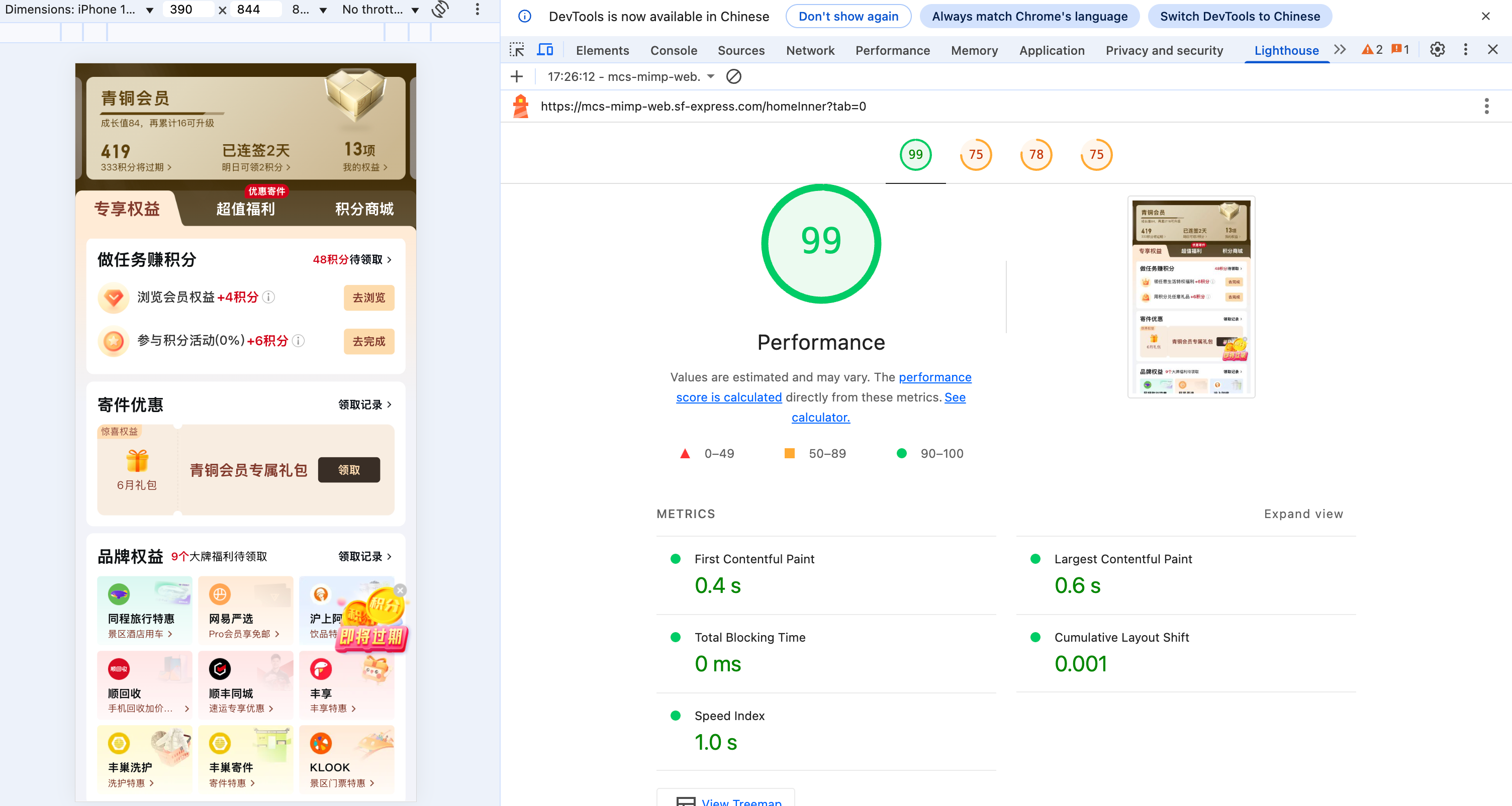 根据我们的业务属性,移动设备要求的体验追求比桌面设备强,并且根据我们实际用户使用数据的分析,目标客户实际使用的设备性能比谷歌统计数据的性能要好,用户对性能要求也更高,所以我们对性能测试的标准进行了调整以用来适配顺丰业务发展。