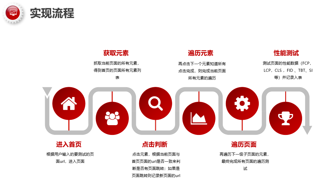 因测试场景多、现有工具耗时耗人力不方便快速出具报告、且为了后续持续集成/持续部署流程中加入前端页面性能测试,我们使用自动化测试遍历前端页面性能,前端页面自动化测试与性能测试结合,自动化模拟操作关键业务路径,自动测试页面性能。