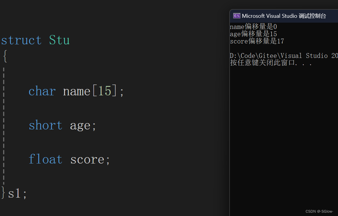 printf("name偏移量是%d\nage偏移量是%d\nscore偏移量是%d\n", (int)offsetof(struct Stu, name), (int)offsetof(struct Stu, age), (int)offsetof(struct Stu, score));
