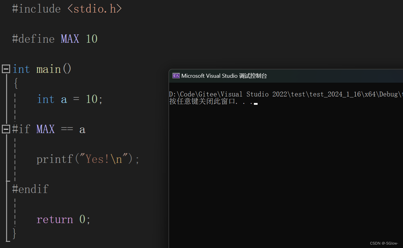 因为#if后面的常量表达式为0(假)的话,#if与#endif之间的代码会在预编译期间被直接删除掉,在这里我们可以看到,#if后面的常量表达式在预编译阶段执行时,a还没有被赋值为10,所以为假,表达式结果是0,和下面效果一样: