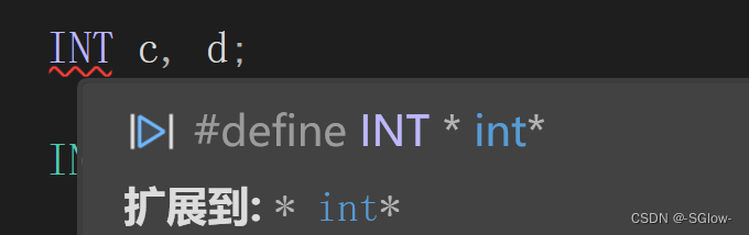 这就要利用上面的e和f的处理方式了。INT_PTR被用于整个替换int*,相当于创建了两个INT_PTR的变量e和f,因此两个都是int*。