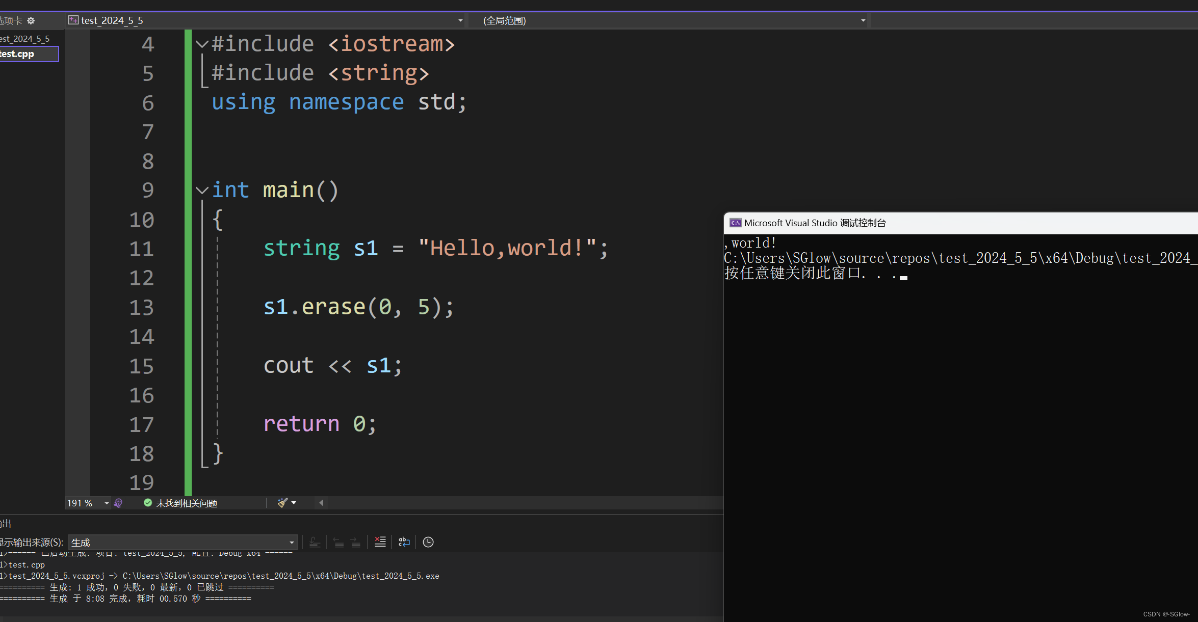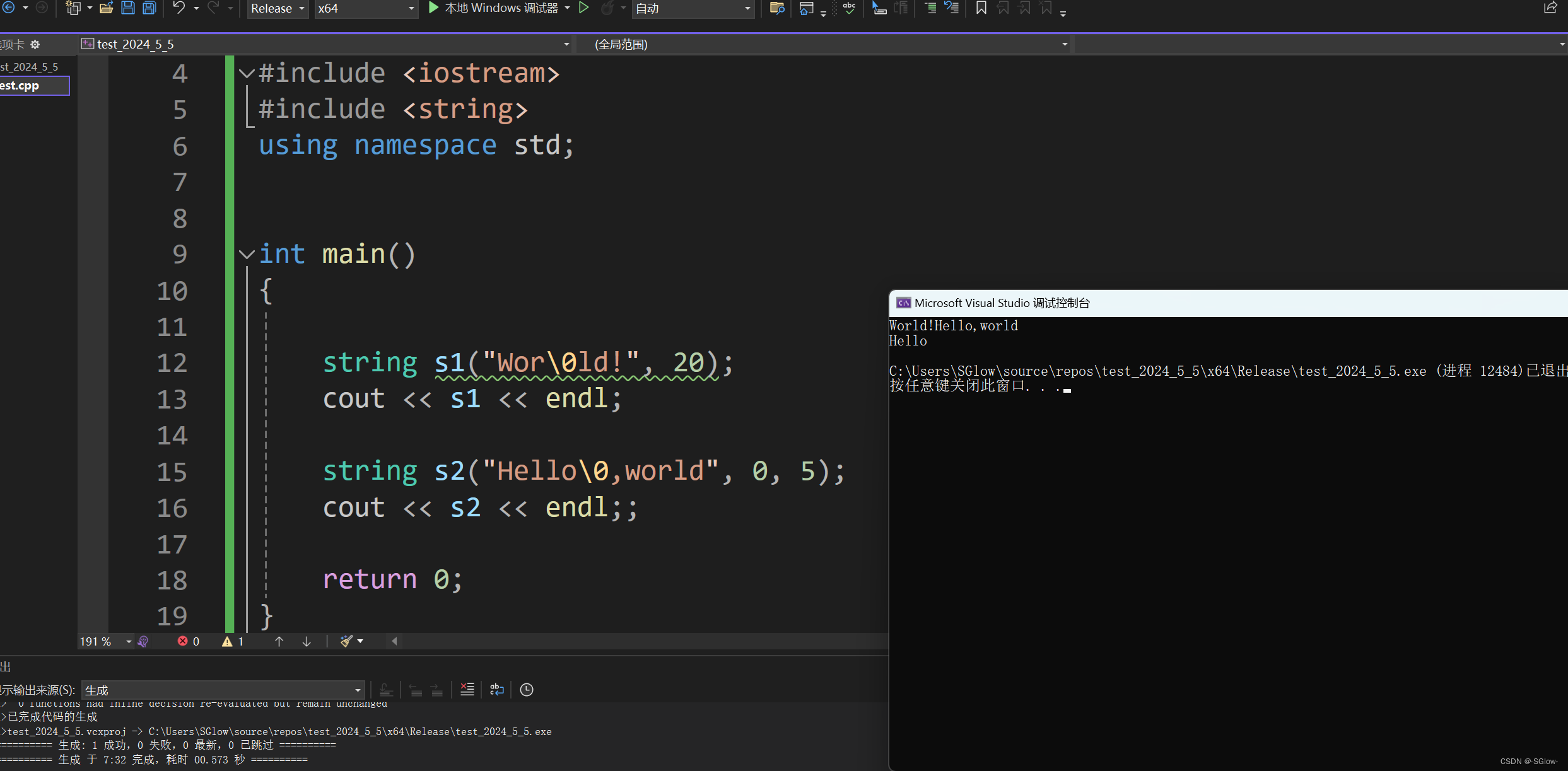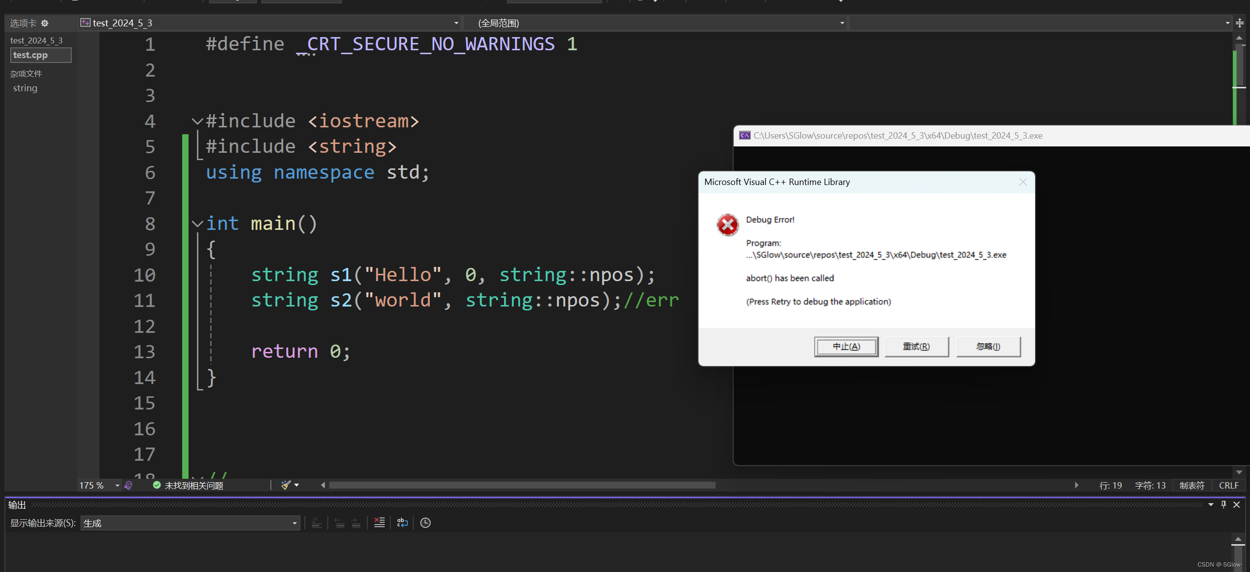 参数:const char* c_str() const;