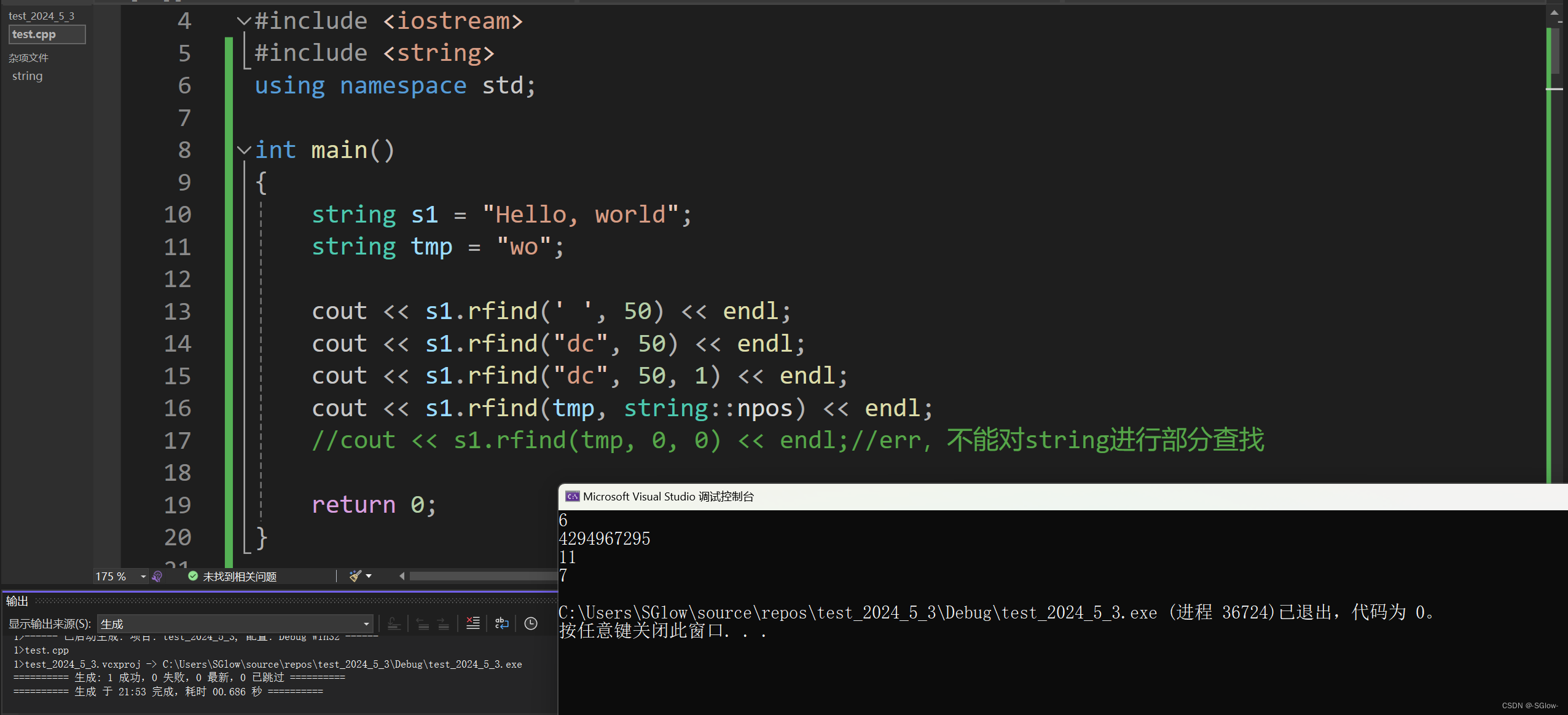 当我们需要在字符串中找某个字符或字符串的时候,我们就可以考虑使用find、rfind