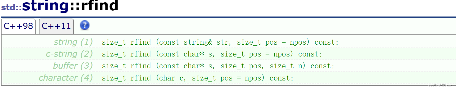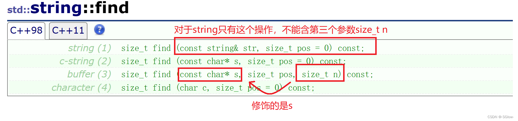 在string里npos使用非常常见,npos是static const size_t npos = -1(大约42亿),在很多函数的参数部分作为缺省值补充