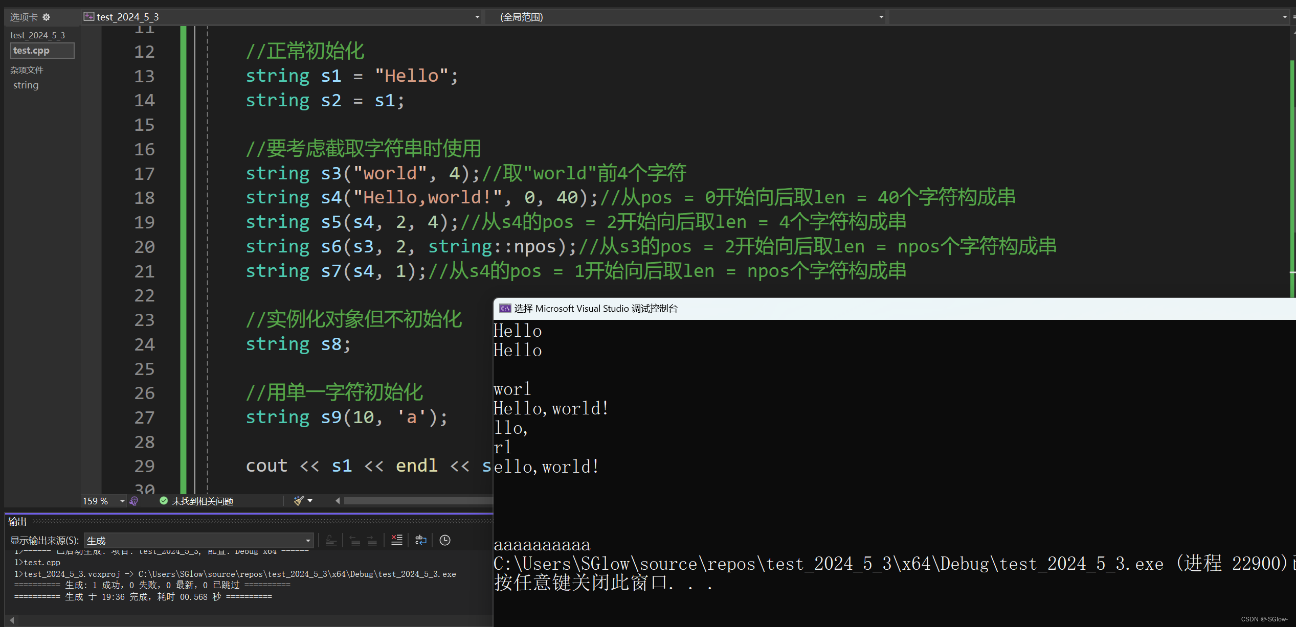 size_t len和size_t n在这里意思其实都是一样的,即从输入的str(s)中往后选取len(n)个字符构成的串初始化对象。但是区别在于len读到\0就会强制停止,而n读到\0不会停下来,会出现越界