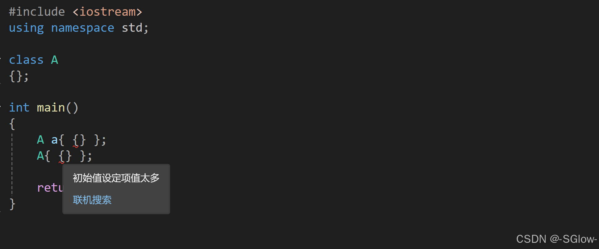 其次,这是一个自定义类型的数组,外层{ }里面放的应该是自定义类型A的具体元素,但是我们应该怎样表示出A的对象呢?这里就需要引入隐式类型转换的概念了。