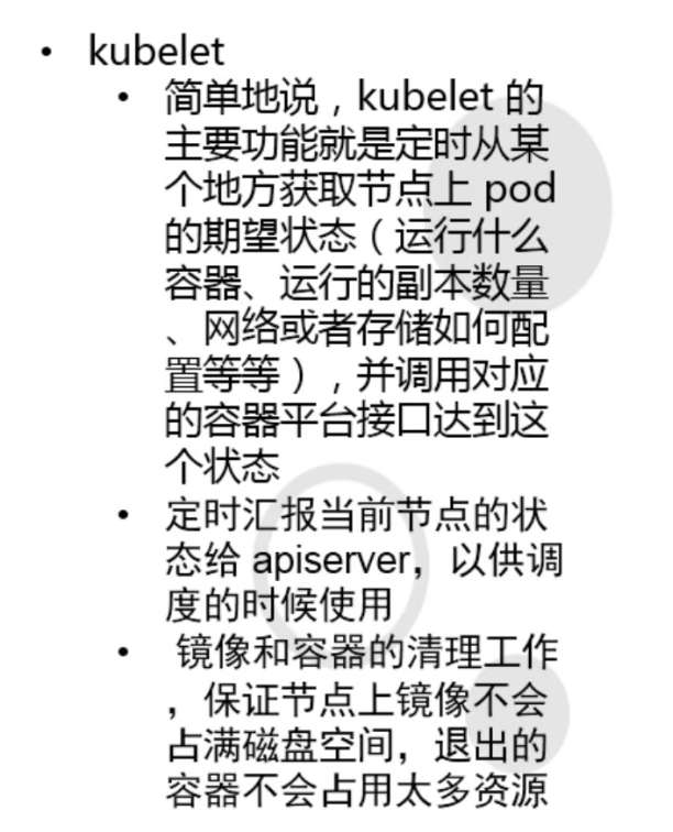2).同时监视分配给该Node节点的 pods,周期性获取容器状态,再通过api-server通知各个组件。