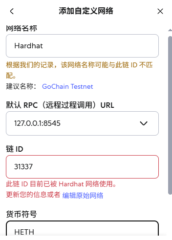 RPC: http://127.0.0.1:8545, ChainId: 31337(Hardhat 默认链 ID)
