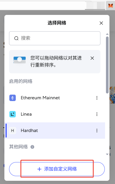 在浏览器插件市场安装 metamask 钱包,导入Hardhat 本地网络生成的账户私钥