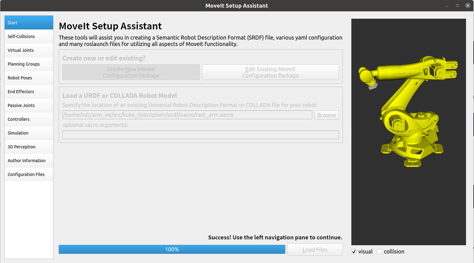 1、使用 MoveIt Setup Assistant 生成配置