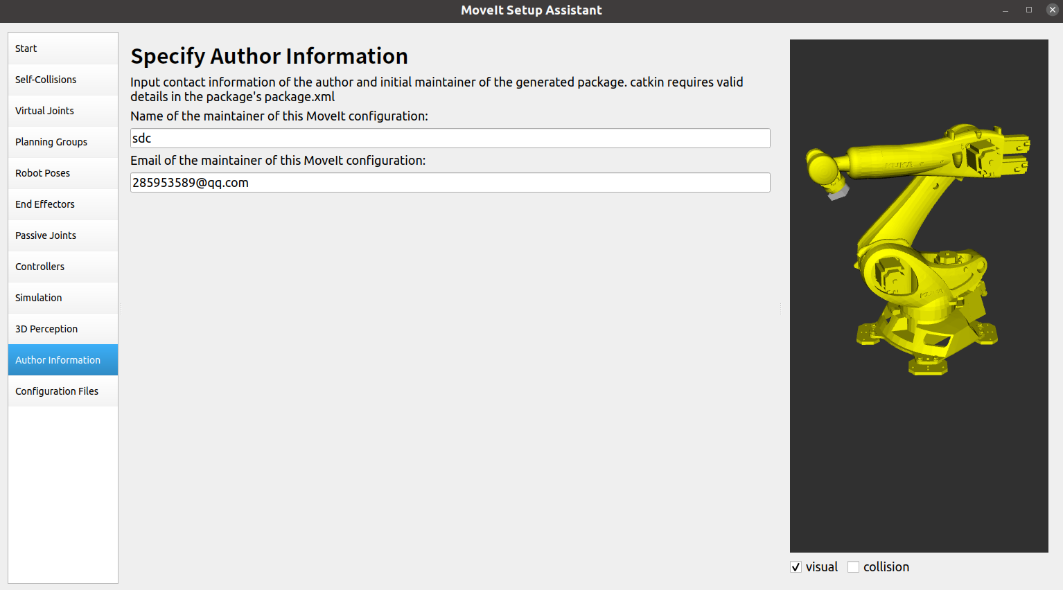 配置 MoveIt 功能包