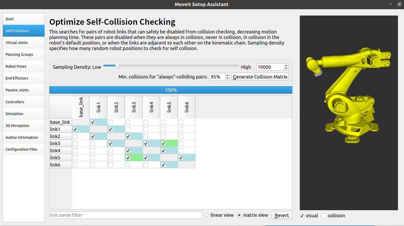 这里直接点击Generate Collision Matrix,生成碰撞关系