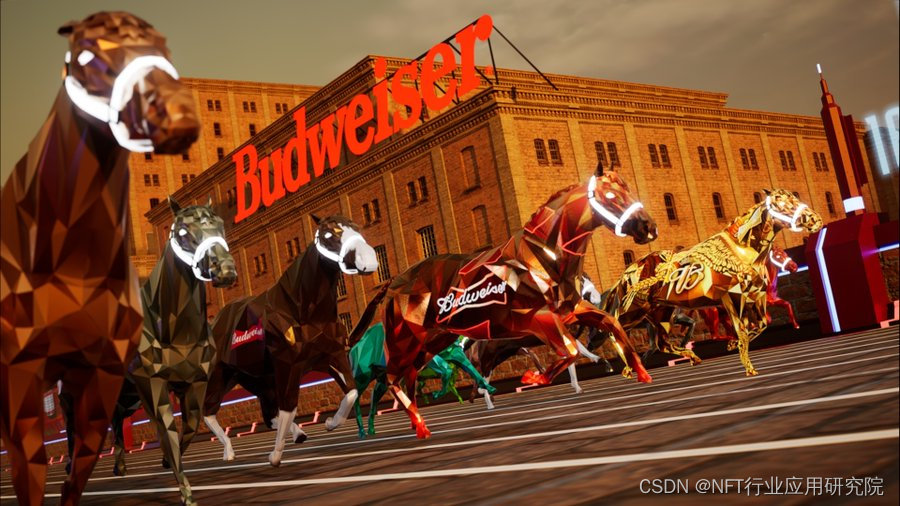 2、啤酒制造商百威(Budweiser)与Zed Run合作,在其基于NFT的虚拟赛马和投注游戏中部署代币化的克莱兹代尔(Clydesdale)挽马。