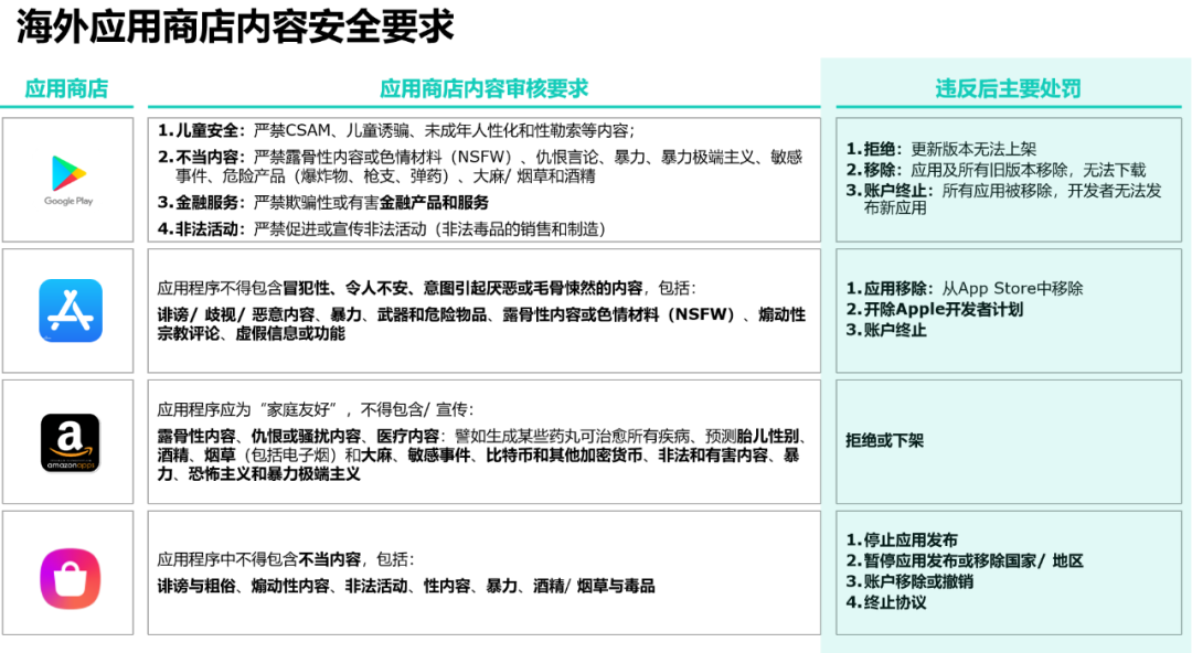应用商店是游戏出海的“入场通道”,Google Play、App Store等主流平台均有严格的内容审核标准,违规将面临下架、账户终止等严重后果。