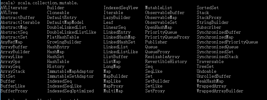 可以通过命令”scala.collection.mutable.“查看所有可变集合