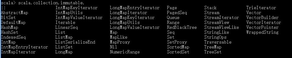可以通过命令"scala.collection.immutable."查看所有不可变集合