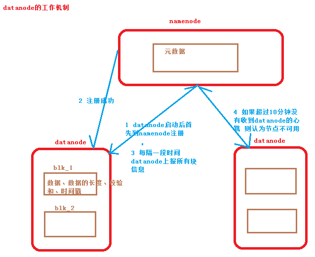 4.默认如果超过10分钟Namenode没有收到Datanode的信息信息,则认为节点不可用