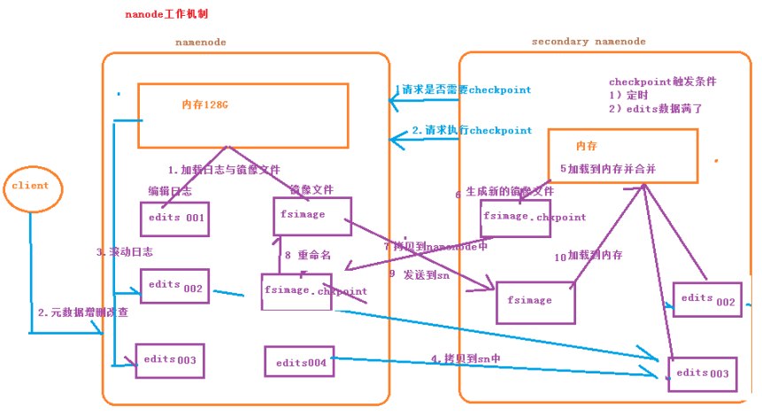 5.SecondarNamenode的内存会加载拷贝的edits文件并合并;