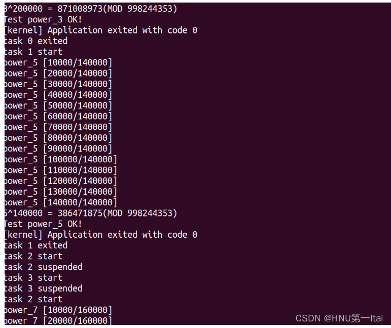 ** 扩展内核,能够统计每个应用执行后的完成时间:用户态完成时间和内核态完成时间。
