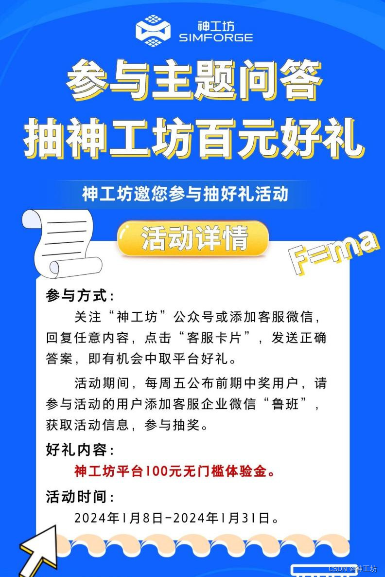 新年新征程,万象启新章。迎接崭新的2024,神工坊诚挚邀请您与我们一起探索力学的奥秘,参与仿真知识问答,赢百元好礼!