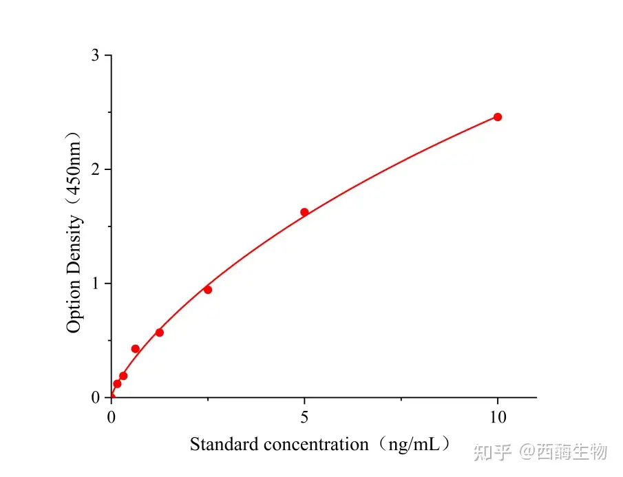 本图所示标准曲线仅供示例,结果计算应以同次试验标准品所绘标准曲线为准计算样本结果。