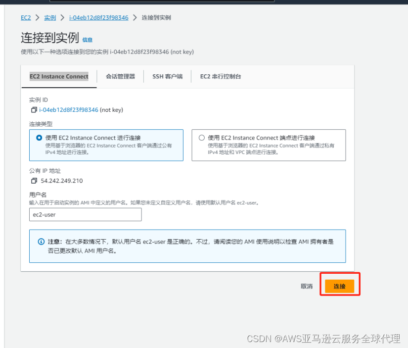 1.在aws 控制台 通过EC2 Instance Connect 连接实例