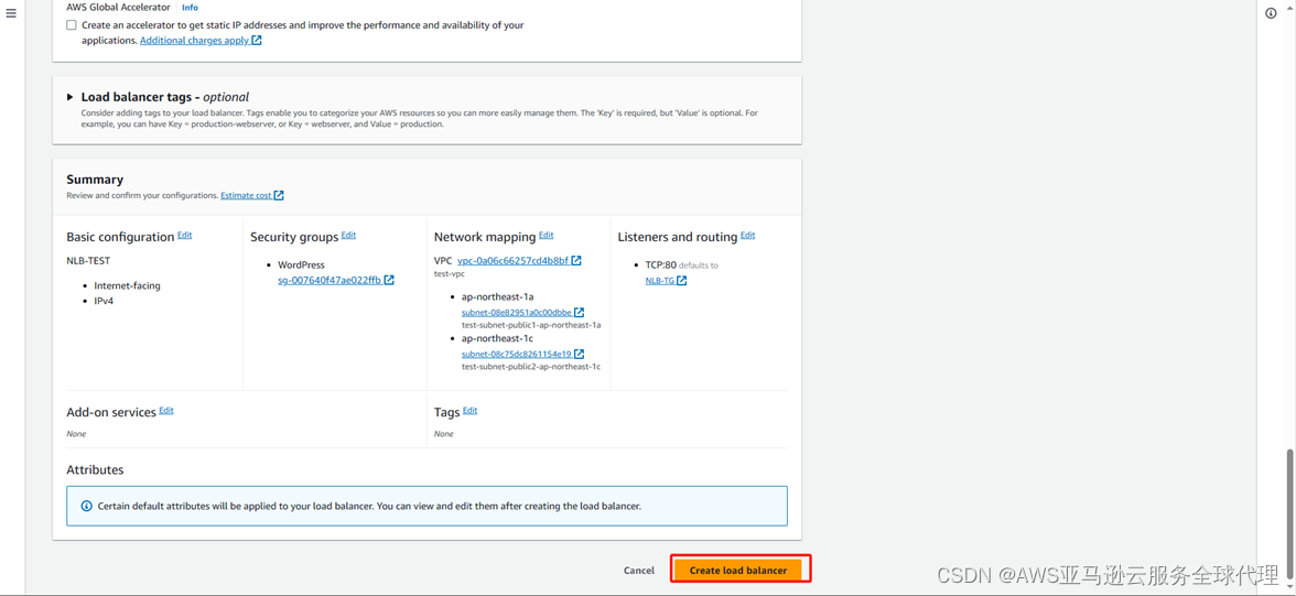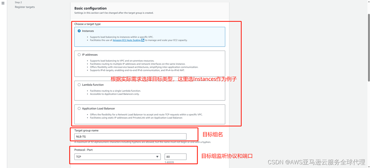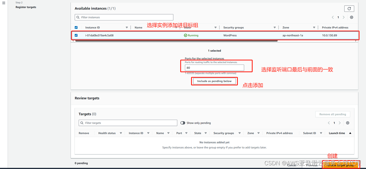 创建好之后返回NLB创建页面,添加目标组进行创建。