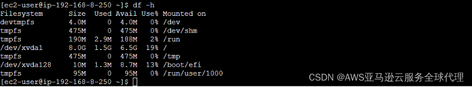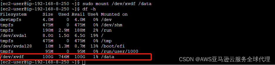 2、使用 df -h 命令查看已格式化并挂载的卷。