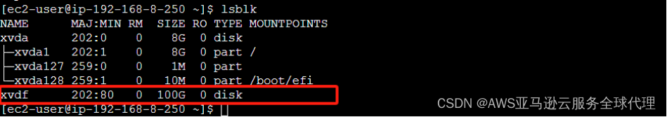 3、使用 lsblk 查看在启动时已映射但未格式化和装载的所有卷。