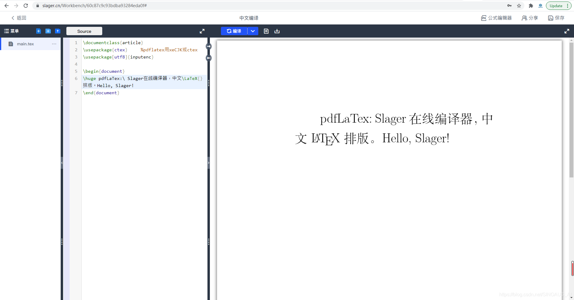 \huge pdfLaTex:\ Slager在线编译器,中文\LaTeX{}排版。Hello, Slager!