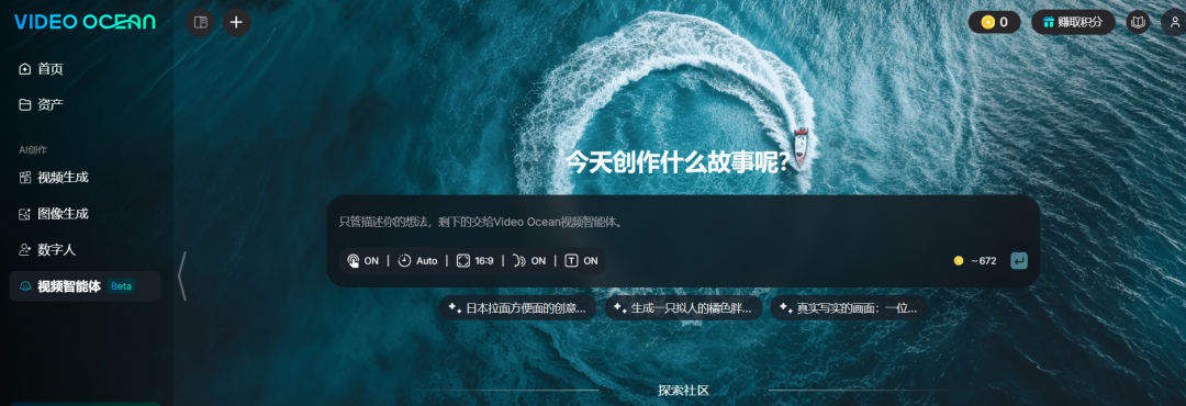 对于内容创作者来说,Video Ocean Agent降低了视频制作的技术门槛。这意味着,创作者不再需要专业的视频剪辑技能,只要能够用语言描述自己的创意,就能快速生成高质量视频内容,这为更多人参与视频创作提供了可能。