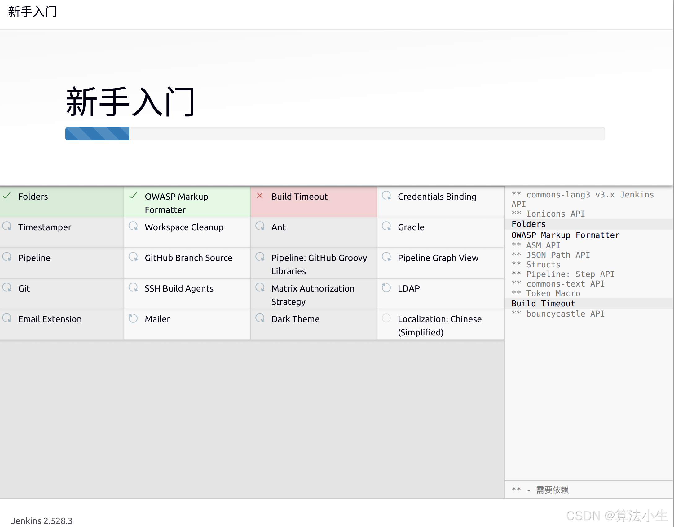 安装插件,根据需要选择,科学上网,我就直接选择了推荐安装,对于安装失败的没关系,重启jenkins,然后再多安装几次即可